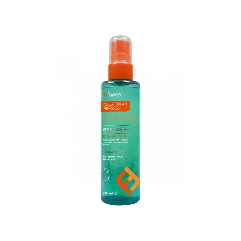 Agua solar bifásica, con factor de protección solar 50 en spray. Protege de las radiaciones solar UV A y UV B, mientras hidrata y reduce el estrés oxidativo.