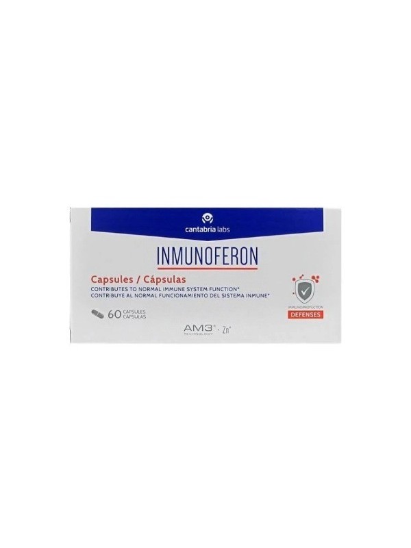 INMUNOFERON ES UN COMPLEMENTO ALIMENTICIO CON UNA FÓRMULA EXCLUSIVA A BASE DE AM3® (ALFA GLUCOMANANO FOSFORILADO Y PROTEÍNA DE SOJA), TECNOLOGÍA PATENTADA POR CANTABRIA LABS, Y ZINC, INGREDIENTE QUE CONTRIBUYE AL NORMAL FUNCIONAMIENTO DEL SISTEMA INMUNE.CADA LOTE DE INMUNOFERON CÁPSULAS ES VERIFICADO POR MEDIO DEL PROGRAMA INFORMED SPORT EN RELACIÓN A SUSTANCIAS PROHIBIDAS PARA DEPORTISTAS. LOS PRODUCTOS SE SOMETEN A UNOS RIGUROSOS TEST MEDIANTE MÉTODOS ACREDITADOS POR LA ISO 17025 PARA PROPORCIONAR EL MÁXIMO NIVEL DE SEGURIDAD PARA LOS DEPORTISTAS. PARA MÁS INFORMACIÓN ACERCA DE LOS PROCESOS DE TESTEO, POR FAVOR VISITE INFORMED-SPORT. COM.MODO DE EMPLEOADULTOS: 2 CÁPSULAS O 2 SOBRES UNA VEZ AL DÍANIÑOS: 1 CÁPSULA O 1 SOBRE UNA VEZ AL DÍACOMPOSICIÓNPOR CÁPSULA O SOBRE:30 MG AM3®3 MG ZINC