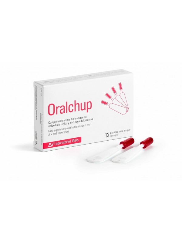 ORALCHUP ES UN COMPLEMENTO ALIMENTICIO A BASE DE ÁCIDO HIALURÓNICO Y ZINC CON EDULCORANTES. EL ZINC CONTRIBUYE AL FUNCIONAMIENTO NORMAL DEL SISTEMA INMUNE Y AL MANTENIMIENTO DE LA PIEL EN CONDICIONES NORMALES, AL PROCESO DE DIVISIÓN CELULAR Y A LA PROTECCIÓN DE LAS CÉLULAS FRENTE AL DAÑO OXIDATIVO.EL ÁCIDO HIALURÓNICO ES EL COMPONENTE PRINCIPAL DE LA SUSTANCIA FUNDAMENTAL DEL TEJIDO CONECTIVO.TODOS LOS CONSUMIDORES, Y EN PARTICULAR LOS NIÑOS Y ADOLESCENTES, ES IMPORTANTE QUE SIGAN UNA ALIMENTACIÓN EQUILIBRADA Y SANA PARA QUE PROPORCIONE LOS NUTRIENTES NECESARIOS PARA EL FUNCIONAMIENTO Y CRECIMIENTO NORMAL DEL ORGANISMO.ORALCHUP SE PRESENTA EN FORMA DE PASTILLA PARA CHUPAR Y DISOLVER EN LA BOCA, CON UN SOPORTE PLÁSTICO PARA EVITAR QUE SE TRAGUE DE GOLPE LA PASTILLA Y CONSEGUIR EN CAMBIO QUE AL SUCCIONARLA ACTÚE LENTAMENTE.EL BUEN SABOR AYUDA A HACERLO MÁS APETECIBLE.