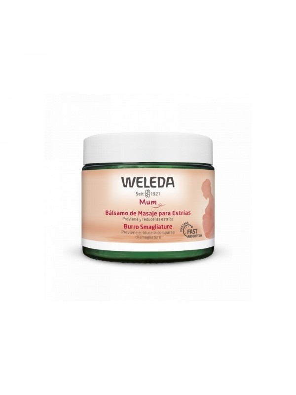 WELEDA BÁLSAMO MASAJE ESTRÍAS 150 GR ES UN BÁLSAMO PARA EL MASAJE DE ESTRÍAS. DA ELASTICIDAD A LA PIEL EVITANDO Y REDUCIENDO LAS ESTRÍAS.EL BÁLSAMO DE MASAJE PARA ESTRÍAS, A TRAVÉS DEL MASAJE, PERMITE DARLE ELASTICIDAD A LA PIEL, EVITANDO Y REDUCIENDO LA APARICIÓN DE ESTRÍAS. UNA TEXTURA FÁCIL DE APLICAR Y DE MASAJEAR AL PIEL, SE ABSORBE MUY RÁPIDO PARA PODER VESTIRSE A CONTINUACIÓN DE LA APLICACIÓN SIN PROBLEMA. APTO DURANTE EL EMBARAZO, NO INTERFIERE EN LAS ECOGRAFÍAS Y DURANTE LA LACTANCIA.