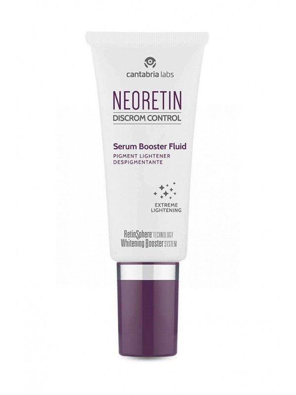 Neoretin Discrom Control Sérum Booster Fluid 30ml es un sérum despigmentante de rápida absorción, formulado para combatir las manchas oscuras y mejorar la luminosidad de la piel.