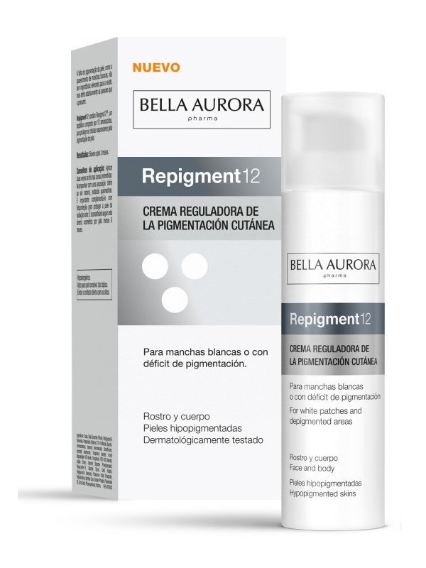 CON REPIGMA12TM, UN INNOVADOR MECANISMO DE ACCIÓN QUE BLOQUEA LA PROTEÍNA MIA, CAUSANTE DE LA DESPIGMENTACIÓN, MANTIENE EL MELANOCITO ESTABLE Y, MEDIANTE LA EXPOSICIÓN A LA LUZ UV NATURAL O ARTIFICIAL, REPIGMENTA LA ZONA DESPIGMENTADA. FRENA ASÍ LA EVOLUCIÓN DE LAS MANCHAS BLANCAS Y CONSIGUE UNA REPIGMENTACIÓN SATISFACTORIA DE LA ZONA AFECTADA.A LOS 3 MESES DE TRATAMIENTO, LA PIEL INICIA LA REPIGMENTACIÓN Y EMPIEZAN A RESTABLECERSE LOS NIVELES NATURALES DE MELANINA.ROSTRO Y CUERPO. HIPOALERGÉNICO. DERMATOLÓGICAMENTE TESTADO. APTO PARA PIEL SENSIBLE.PRECAUCIONESSE RECOMIENDA QUE EL TRATAMIENTO COSMÉTICO SEA SUPERVISADO POR UN PROFESIONAL SANITARIO. LA EXPOSICIÓN A LA RADIACIÓN ULTRAVIOLETA ARTIFICIAL ESTÁ DESTINADA ÚNICAMENTE A ADULTOS MAYORES DE 18 AÑOS. ES IMPORTANTE COMPLEMENTAR EL TRATAMIENTO COSMÉTICO CON CÁPSULAS SOLARES REPIGMENTSUN, UN COMPLEMENTO ALIMENTICIO QUE PREPARA LA PIEL PARA LA EXPOSICIÓN AL SOL O FOTOTERAPIA UVA / UVB. EVITE EL CONTACTO DIRECTO CON LOS OJOS.INGREDIENTES AQUA (WATER), SNAIL SECRETION FILTRATE, POLYGLYCERYL-6 DISTEARATE, PROPANEDIOL, BETAINE, C15-19 ALKANE, GLYCERIN, ISOHEXADECANE, ISONONYL ISONONANOATE, DIMETHICONE, ISOPROPYL ISOSTEARATE, TOCOPHERYL ACETATE, ACETYL OLIGOPEPTIDE-185 AMIDE, TOCOPHEROL, JOJOBA ESTERS, GLYCERYL STEARATE, PEG-100 STEARATE, PHENYLPROPANOL, POLYACRYLATE-13, CAPRYLYL GLYCOL, CETYL ALCOHOL, POLYGLYCERYL-3 BEESWAX, POTASSIUM CETYL PHOSPHATE, POLYISOBUTENE, XANTHAN GUM, SODIUM PHYTATE, POLYSORBATE 20, CITRIC ACID, PHENOXYETHANOL, PARFUM (FRAGRANCE).
