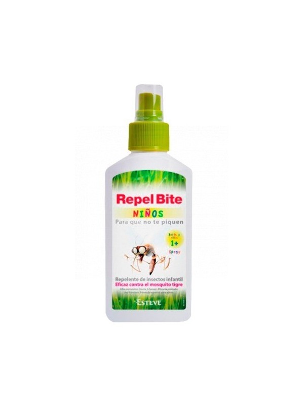 ¡EL REPELENTE DE INSECTOS PARA LOS MÁS PEQUEÑOS! REPEL BITE NIÑOS SPRAY ESTÁ ESPECIALMENTE FORMULADO PARA PROTEGER LA DELICADA PIEL DE LOS NIÑOS MÁS PEQUEÑOS DELAS PICADURAS DE MOSQUITOS.APTO PARA NIÑOS A PARTIR DE 12 MESESEFICAZ* FRENTE A CULEX PIPIENS (MOSQUITO COMÚN), AEDES ALBOPICTUS (MOSQUITO TIGRE) Y AEDES AEGYPTI.PROTECCIÓN DE HASTA 6 HORASPROTECCIÓN PARA ZONAS DE CLIMA TEMPLADO/MEDITERRÁNEOTESTADO BAJO CONTROL DERMATOLÓGICOCONTIENE 0% ALCOHOLFÓRMULA ESPECIAL PARA NIÑOSSIN LÍMITE DE APLICACIONESMODO DE EMPLEOGRACIAS A SU FORMATO EN SPRAY ES MUY FÁCIL DE USAR. APLICAR Y EXTENDER UNIFORMEMENTE REPEL BITE SOBRE LAS ZONAS DE LA PIEL DE LOS MÁS PEQUEÑOS A PROTEGER. AL APLICAR EL SPRAY REPELENTE, SE FORMA EN LA PIEL UNA BARRERA PROTECTORA QUE AHUYENTARÁ DE MANERA EFICAZ A LOS MOSQUITOS Y OTROS INSECTOS DURANTE 6 HORAS.PRECAUCIONESPERFIL SEGURO DE TOXICIDADCOMPOSICIÓNFORMULADO ESPECÍFICAMENTE PARA NIÑOS.