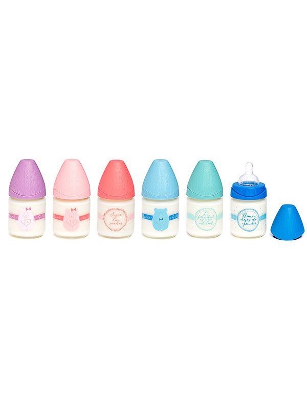 FABRICADO EN VIDRIO, NO ABSORBE OLORES, SABORES, NI COLORES DE LOS ALIMENTOS.TRANSPARENCIA, NATURALIDAD Y RESISTENCIA A LOS CAMBIOS BRUSCOS DE TEMPERATURA.SU GRAN DIÁMETRO FACILITA A LOS PADRES LA PREPARACIÓN Y LA LIMPIEZA DE LA TOMA, ADEMÁS DE POTENCIAR SU ESTABILIDAD, MIENTRAS QUE SU FORMA ERGONÓMICA PERMITE UNA MAYOR SUJECIÓN MÁS CÓMODA Y SEGURA.CON TETINA REDONDA CON VÁLVULAS ANTICÓLICO, QUE PERMITE ADAPTARSE AL RITMO DE SUCCIÓN DEL BEBÉ DURANTE LA TOMA, TAN SÓLO GIRANDO EL BIBERÓN.TETINA FABRICADA EN SILICONA MÉDICA, MATERIAL ALTAMENTE RESISTENTE E INDEFORMABLE QUE NO ALTERA SU COLOR NI OLOR.DISPONIBLE EN DIFERENTES DISEÑOS A JUEGO CON CHUPETES Y BROCHES PINZA DE LA COLECCIÓN.CON FUNDA DE SILICONA QUE PARA PROTEGER EL CRISTAL FRENTE A RASGUÑOS. TIENE UNA ABERTURA LATERAL QUE PERMITE VER LA CANTIDAD DE LÍQUIDO.