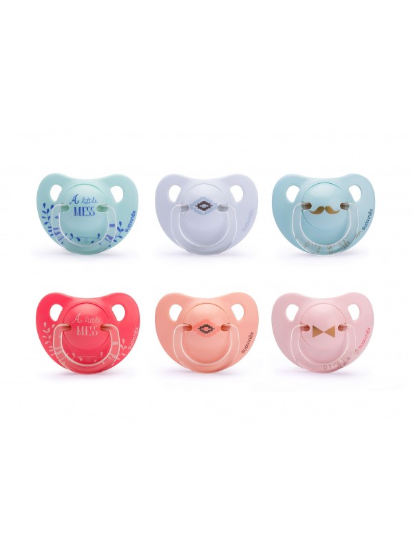CON TETINA ANATÓMICA QUE IMITA LA FORMA DEL PEZÓN MATERNO DURANTE LA SUCCIÓN, ADAPTÁNDOSE PERFECTAMENTE AL PALADAR.AVALADA POR LA SOCIEDAD ESPAÑOLA DE ODONTOPEDIATRÍA.DISPONIBLE EN 6 DISEÑOS DISTINTOS.COMBINABLES CON LOS BROCHES PINZA Y LOS BIBERONES DE LA COLECCIÓN.