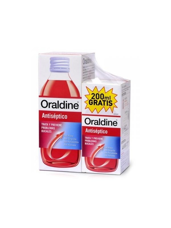 Descripción: Oraldine Antiséptico es un enjuague bucal formulado para proporcionar una higiene bucal completa y proteger contra las infecciones. Este pack especial incluye dos tamaños, 400 ml y 200 ml, ideal para el uso diario en casa y para llevar de viaje.