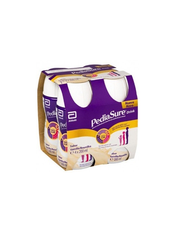 PEDIASURE DRINK VAINILLA 4X200ML ES UN ALIMENTO COMPLETO Y EQUILIBRADO ESPECIALMENTE DISEÑADO PARA NIÑOS A PARTIR DE 1 AÑO QUE NO COMEN BIEN. PROPORCIONA AL NIÑO EL APORTE NUTRICIONAL NECESARIO GRACIAS A SUS NUTRIENTES ESENCIALES COMO VITAMINAS Y MINERALES. CONTIENE HIERRO QUE AYUDA AL NORMAL DESARROLLO COGNITIVO DE LOS NIÑOS.*ES IMPOTANTE MANTENER UNA DIETA VARIADA Y EQUILIBRADA ACOMPAÑADA DE UN ESTILO DE VIDA SALUDABLE.