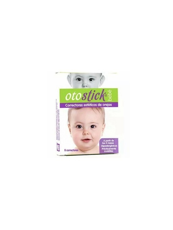 OTOSTICK BEBÉ CORRECTOR ESTÉTICO DE OREJAS ESTÁ INDICADO PARA BEBÉS A PARTIR DE 3 MESES CON LAS OREJAS SEPARADAS. ESTÁ FORMADO POR DOS LÁMINAS DE SILICONA QUE SE FIJAN A LA CABEZA Y A LA OREJA, CON ADHESIVOS HIPOALERGÉNICOS. DE ESTA MANERA LA OREJA SE MANTIENE EN LA POSICIÓN ADECUADA. CONTIENE 8 UNIDADES Y UN GORRITO DE SEGURIDAD.
