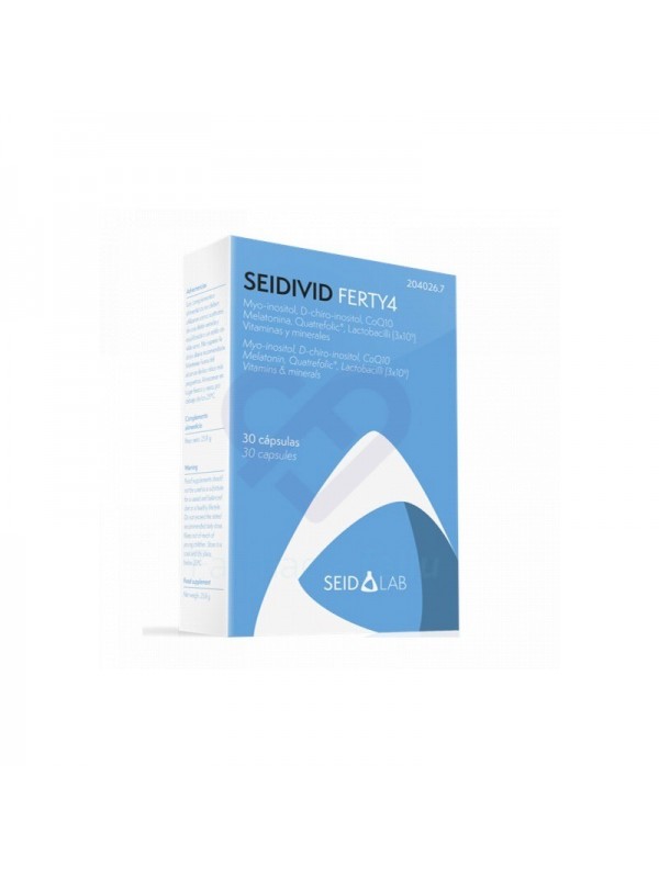 CONTIENE CUATRO GRUPOS DE INGREDIENTES QUE CONTRIBUYEN A CUATRO FUNCIONES ESENCIALES EN LA ETAPA PRECONCEPTIVA DE LA MUJER.ES UNA FÓRMULA 4 VECES MÁS POTENTE EN PRECONCEPCIÓN DE LA MUJER QUE CONTIENE MYO-INOSITOL, D-CHIRO-INOSITOL, COENZIMA Q10, MELATONINA Y VITAMINA D, QUE AYUDAN A LA PRODUCCIÓN DE OVOCITOS Y CONTRIBUYEN A SU MADURACIÓN. ADEMÁS, INCORPORA FOLATO METILADO (QUATREFOLIC®) Y MICRONUTRIENTES, COMO EL HIERRO, EL YODO Y EL ZINC, QUE CONTRIBUYEN A LA PREPARACIÓN DEL ORGANISMO PARA EL EMBARAZO.SEIDIVID FERTY4® CONTIENE CUATRO GRUPOS DE IN GREDIENTES QUE CONTRIBUYEN A CUATRO FUNCIONES ESENCIALES EN LA ETAPA PRECONCEPTIVA DE LA MUJER. EN PRIMER LUGAR, CONTIENE INGREDIENTES COMO EL MIO-INOSITOL, EL D-CHIRO-INOSITOL, LA COENZIMA Q10,    LA MELATONINA Y LA VITAMINA D, QUE AYUDAN A LA PRODUCCIÓN DE OVOCITOS Y CONTRIBUYEN A SU MADURA CIÓN. POR OTRO LADO, CONTIENE FOLATO METILADO (QUATREFOLIC®) Y MICRONUTRIENTES, COMO EL HIERRO, EL YODO Y EL ZINC, QUE CONTRIBUYEN A LA PREPARACIÓN DEL ORGANIS MO PARA EL EMBARAZO. AL MISMO TIEMPO, EL FOLATO METILADO (QUATREFOLIC®), JUNTO CON OTRAS VITAMINAS DEL GRUPO B (B6 Y B12) CONTRIBUYE A CONTROLAR UN POSIBLE EXCESO DE HOMOCISTEÍNA. ESTUDIOS RECIENTES, MUESTRAN QUE LOS NIVELES DE ESTA PROTEÍNA EN SANGRE ESTÁN INVERSAMENTE RELACIONADOS CON LOS NIVELES DE FERTILIDAD EN LA MUJER.LAS VITAMINAS DEL GRUPO B HAN MOSTRADO CAPACIDAD PARA DISMINUIR LOS NIVELES PLASMÁTICOS DE ESTE AMINOÁCIDO.FINALMENTE, LA FÓRMULA SE COMPLETA CON MICROBIOTA ENDOMETRIAL EXÓGENA: LACTOBACILLUS CRISPATUS Y LAC TOBACILLUS GASSERI. LA EXISTENCIA DE UNA MICROBIOTA VAGINAL E INTRAUTERINA SANAS SE CONSIDERA CADA VEZ MÁS COMO UN FACTOR DE ÉXITO DETERMINANTE EN LA FERTILIDAD DE LA MUJER. DE HECHO, INVESTIGACIONES RECIENTES, LLEVADAS A CABO CON PACIENTES SOMETIDAS A TERAPIAS DE FECUNDACIÓN IN VITRO, HAN DEMOSTRADO QUE LAS PACIENTES CON MENOR ABUNDANCIA DE LACTO BACILOS EN SU ENDOMETRIO PRESENTAN MENORES TASAS DE IMPLANTACIÓN DEL BLASTOCITO (ÓVULO FECUNDADO). A SU VEZ, OTROS TRABAJOS CIENTÍFICOS CONSIDERAN LA PREDOMINANCIA DE L. CRISPATUS EN LA FLORA VAGINAL COMO ÚNICO FACTOR DE ÉXITO EN TRATAMIENTOS DE INSEMINACIÓN INTRAUTERINA.