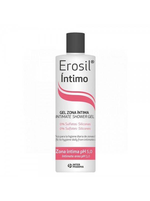 GEL ÍNTIMO HIPOALERGÉNICO SIN JABÓN. FORMULADO ESPECÍFICAMENTE PARA LA HIGIENE DE LA ZONA ÍNTIMA FEMENINA. HIGIENIZA SIN JABÓN. APTO PARA LA HIGIENE ÍNTIMA INFANTIL Y POST-PARTO.EROSIL® GEL ÍNTIMO ES UN GEL ÍNTIMO SUAVE E HIPOALERGÉNICO SIN JABÓN. SU PH ES LIGERAMENTE ÁCIDO (PH5,0) ADAPTÁNDOSE A LAS NECESIDADES DE LA ZONA ÍNTIMA PARA PROTEGER LA FLORA BACTERIANA ÍNTIMA. ESTÁ INDICADO PARA ALIVIAR IRRITACIONES ÍNTIMAS GENERALES, DURANTE LA MENSTRUACIÓN, PARA MOLESTIAS ÍNTIMAS DESPUÉS DEL PARTO O TRAS RELACIONES ÍNTIMAS. APTO TAMBIÉN PARA LA DELICADA HIGIENE ÍNTIMA INFANTIL. PROPIEDADES ESPECÍFICAS:HIGIENIZA LA ZONA ÍNTIMA APORTANDO UNA SENSACIÓN REFRESCANTE Y DE SUAVIDAD Y CONFORT. ALIVIA IRRITACIONES Y MOLESTIAS ÍNTIMAS.HIDRATA LA ZONA ÍNTIMA EVITANDO LA SENSACIÓN DE TIRANTEZ.MANTIENE EL EQUILIBRIO MICROBIANO DE LA FLORA ÍNTIMA.ACCIÓN DESODORIZANTE: AYUDA A ELIMINAR LOS MALES OLORES CAUSADOS POR INFECCIONES O PROPIOS DEL PERÍODO MENSTRUAL POR SU EXTRACTO DE BARDANA.INGREDIENTES ACTIVOS: EXTRACTO DE MANZANILLA, SOJA, BARDANA, ÁCIDO LÁCTICO, VITAMINAS, PANTENOL, ALANTOÍNA Y GLICERINA.NO CONTIENE JABÓN. PH VAGINAL. NO CONTIENE SULFATOS, PARABENOS, SILICONAS NI COLORANTES ARTIFICIALES. DERMATOLÓGICAMENTE PROBADO.