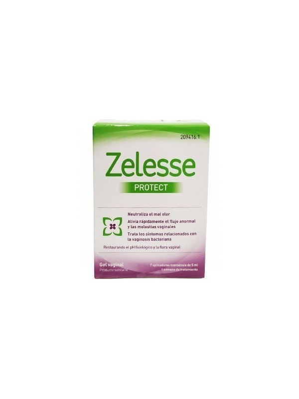 ¿OLOR VAGINAL DESAGRADABLE? ¿FLUJO ANORMAL? ¿MOLESTIAS?NO ESTÁS SOLA. EN LA VAGINA CONVIVEN DIFERENTES TIPOS DE BACTERIAS, SIENDO LA MAYORÍA DE ELLAS BACTERIAS ÁCIDOLÁCTICAS. ESTAS BACTERIAS PRODUCEN ÁCIDO LÁCTICO QUE ACIDIFICA Y MANTIENE EL PH FISIOLÓGICO (BAJO) DE LA VAGINA,LO CUAL SIRVE COMO PROTECCIÓN CONTRA LAS INFECCIONES. SI EL NÚMERO DE BACTERIAS ÁCIDO LÁCTICAS DISMINUYE YAUMENTA EL PH VAGINAL, SE PRODUCE UN CRECIMIENTO DE LAS BACTERIAS PERJUDICIALES.ESTO SE CONOCE CLÍNICAMENTE COMO VAGINOSIS BACTERIANA (VB). SUS PRINCIPALES SÍNTOMAS SON EL MAL OLOR, EL FLUJOANORMAL Y LAS MOLESTIAS VAGINALES. LA VAGINOSIS BACTERIANA ES UNA AFECCIÓN VAGINAL MUY FRECUENTE.LA VAGINOSIS BACTERIANA PUEDE SER CAUSADA POR VARIOS FACTORES, COMO LA EXISTENCIA DE REGLAS PROLONGADAS, LOSLAVADOS VAGINALES FRECUENTES, EL EMPLEO DE PRODUCTOS DE HIGIENE ÍNTIMA Y LAS RELACIONES SEXUALES. LOSTRATAMIENTOS CON ANTIBIÓTICOS Y EL USO DE DISPOSITIVOS INTRAUTERINOS (DIU) TAMBIÉN PUEDEN AFECTAR AL EQUILIBRIODE LA VAGINA.ZELESSE PROTECT TRATA LOS SÍNTOMAS DE LA VAGINOSIS BACTERIANA DE FORMA NATURAL:ZELESSE PROTECT CREA UNA PELÍCULA CON EFECTO BARRERA QUE SE ADHIERE A LA MUCOSA VAGINAL FORMANDO UNACAPA PROTECTORA. DE ESTA MANERA, LIMITA LA ADHESIÓN SOBRE LA MUCOSA DE BACTERIAS Y MICROORGANISMOSDAÑINOS, CREANDO UN AMBIENTE VAGINAL ADVERSO PARA ELLOS.ZELESSE PROTECT CONTIENE ÁCIDO LÁCTICO, QUE NEUTRALIZA EFICAZMENTE EL MAL OLOR Y RESTAURA EL PH FISIOLÓGICODE LA VAGINA. CUANDO EL PH ES NORMAL Y DISPONEN DE NUTRIENTES ADECUADOS, LAS BACTERIAS ÁCIDO LÁCTICASPROTECTORAS CRECEN Y SE RESTAURA EL EQUILIBRIO VAGINAL NATURAL, ALIVIANDO ASÍ EL FLUJO ANORMAL Y LAS MOLESTIAS,A LA VEZ QUE SE EVITA LA APARICIÓN DE OLOR DESAGRADABLE.¿CUÁNDO DEBO UTILIZAR ZELESSE PROTECT?ZELESSE PROTECT NEUTRALIZA EL OLOR DESAGRADABLE, RESTABLECE EL FLUJO NORMAL Y ALIVIA LAS MOLESTIAS VAGINALES.ADEMÁS, RESTABLECE LA FLORA VAGINAL EN EL CONTEXTO DE ALTERACIONES VAGINALES, QUE INCLUYE, ENTRE OTRAS, LAVAGINOSIS BACTERIANA.ZELESSE PROTECT TAMBIÉN SE PUEDE UTILIZAR PARA RESTAURAR EL PH FISIOLÓGICO DE LA VAGINA.PARA EL ALIVIO EFICAZ DEL MAL OLOR, EL FLUJO ANORMAL Y LASMOLESTIAS VAGINALES RELACIONADAS CON LAS AFECCIONESVAGINALES, INCLUIDA LA VAGINOSIS BACTERIANA.SI NOTA UNA RECURRENCIA DE LOS SÍNTOMAS, PUEDE USARZELESSE PROTECT PARA AYUDAR A RESTAURAR EL PHFISIOLÓGICO Y LA FLORA VAGINAL.REPETIR EL TRATAMIENTO UTILIZANDO1 APLICADOR DIARIO DURANTE 7 DÍAS.SE DEBE UTILIZAR UN APLICADORDIARIO DURANTE 7 DÍAS.TRATAMIENTOMANTENIMIENTOPROTECT GEL VAGINALPRODUCTO SANITARIODOSIFICACIÓN:ZELESSE PROTECT ES FÁCIL DE USAR.ZELESSE PROTECT SE COMERCIALIZA EN APLICADORES HIGIÉNICOS DE UN SOLO USO. PUEDE SER UTILIZADO POR LAS PROPIASPACIENTES APLICANDO MEDIDAS HIGIÉNICAS ESTÁNDAR (CON CUIDADO Y LAVÁNDOSE BIEN LAS MANOS ANTES DE LAAPLICACIÓN) Y SIGUIENDO ESTOS PASOS:1. ROMPA EL EXTREMO DE LA CÁNULA E INTRODUZCA EL APLICADOR EN LA VAGINA.2. PRESIONE EL APLICADOR HASTA ADMINISTRAR LA TOTALIDAD DEL PRODUCTO (5 ML).3. RETIRE EL APLICADOR MIENTRAS CONTINÚA PRESIONÁNDOLO Y DESÉCHELO.4. REPITA LOS PASOS 1 A 3 DURANTE 7 DÍAS.SE RECOMIENDA APLICAR ZELESSE PROTECT AL ACOSTARSE. TAMBIÉN SE RECOMIENDA EL EMPLEO DE SALVA-SLIP DURANTEEL TRATAMIENTO, YA QUE ES HABITUAL LA PRESENCIA DE FLUJO. ESTO NO QUIERE DECIR QUE EL TRATAMIENTO SEA INEFICAZ.ZELESSE PROTECT ES SEGURO DE USAR.ZELESSE PROTECT PUEDE PRODUCIR ESCOZOR EN CASO DE HABER INFECCIONES FÚNGICAS EN CURSO (POR EJEMPLO,CANDIDIASIS) O POR FISURAS EN LA MUCOSA VAGINAL. ESTA SENSACIÓN DESAPARECE RÁPIDAMENTE.¿CUÁNDO DEBO ACUDIR A MI MÉDICO?ACUDA A SU MÉDICO SI LOS SÍNTOMAS PERSISTEN O EMPEORAN, SI SIENTE DOLOR, SI LAS MOLESTIAS NO REMITEN, SI EL FLUJOTIENE SANGRE O SI PRESENTA UN FLUJO ALTERADO EN LA MENOPAUSIA.ZELESSE PROTECT NO ESTÁ CONTRAINDICADO DURANTE EL EMBARAZO Y LA LACTANCIA.DEBE CONSULTAR A SU MÉDICO SI CREE QUE PUEDE TENER UNA INFECCIÓN VAGINAL DURANTE EL EMBARAZO.SI NO EXPERIMENTA ALIVIO DE LOS SÍNTOMAS DESPUÉS DE USAR ZELESSE PROTECT SEGÚN LAS INSTRUCCIONES DE USO,PÓNGASE EN CONTACTO CON SU MÉDICO.¿CUÁNDO NO USAR ZELESSE PROTECT?EVITE EL USO DE ZELESSE PROTECT SI ESTÁ INTENTANDO QUEDARSE EMBARAZADA. EL PH BAJO DEL GEL PUEDE HACER QUEEL ENTORNO SEA MENOS ADECUADO PARA LOS ESPERMATOZOIDES.NO ES UN ESPERMICIDA Y NO BRINDA PROTECCIÓN CONTRA EL EMBARAZO. NO LO UTILICE COMO MÉTODO ANTICONCEPTIVO.NO USAR EN CASO DE HIPERSENSIBILIDAD A UNO O MÁS DE SUS COMPONENTES.COMPOSICIÓN:AGUA, PROPILENGLICOL, ÁCIDO LÁCTICO, HIDROXIPROPIL METILCELULOSA, HIDRÓXIDO DE SODIO, GLUCÓGENO.SIN CONSERVANTES. NO CONTIENE HORMONAS.ADVERTENCIAS:• NO REUTILICE EL APLICADOR, DESTINADO A UN SOLO USO.• NO LO UTILICE SI EL ENVASE ESTÁ DAÑADO.• NO LO UTILICE DESPUÉS DE LA FECHA DE CADUCIDAD INDICADA EN EL ENVASE.• NO DEBE COMPARTIRSE. ESTÁ DESTINADO A UN SOLO USO.• MANTENER FUERA DE LA VISTA Y DEL ALCANCE DE LOS NIÑOS.• CONSERVAR EN LUGAR SECO, PROTEGIDO DE LA LUZ DIRECTA.• NO INGIERA EL PRODUCTO.