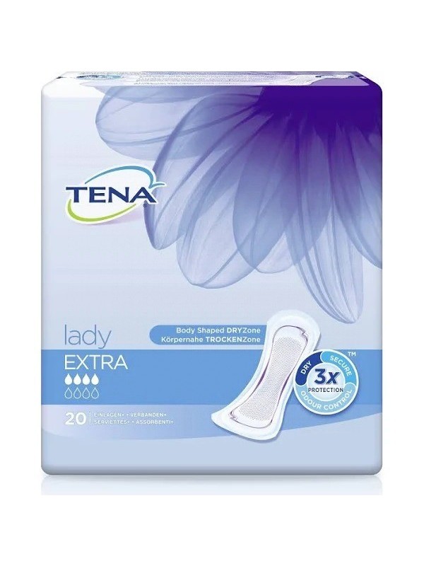 LA COMPRESA PARA LA INCONTINENCIA TENA LADY EXTRA OFRECE MÁXIMA PROTECCIÓN FRENTE A LAS PÉRDIDAS DE ORINA LEVES O MODERADAS. LOS SUAVES ELÁSTICOS LATERALES DE LA COMPRESA SE ADAPTAN AL CONTORNO DEL CUERPO PARA OFRECER MAYOR COMODIDAD Y PROTECCIÓN FRENTE A LAS PÉRDIDAS DE ORINA. LOS ESCAPES, EL OLOR Y LA HUMEDAD SE ABSORBEN RÁPIDAMENTE Y QUEDAN ATRAPADOS EN EL INTERIOR DE LA COMPRESA GRACIAS A LA TRIPLE PROTECCIÓN PARA GARANTIZAR LA SEGURIDAD, COMODIDAD Y DISCRECIÓN. SU SUAVE SUPERFICIE DE TACTO SEDOSO PROPORCIONA UNA SENSACIÓN AGRADABLE SOBRE LA PIEL Y LOS MATERIALES TRANSPIRABLES PERMITEN LA CIRCULACIÓN DEL AIRE PARA EVITAR LA HUMEDAD Y CUIDAR LA SALUD DE LA PIEL. SE PUEDE UTILIZAR TANTO DE DÍA COMO DE NOCHE Y ESTÁ DERMATOLÓGICAMENTE TESTADA PARA PROTEGER Y NO IRRITAR LA PIEL.