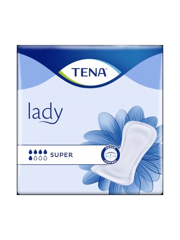 LA COMPRESA PARA LA INCONTINENCIA TENA LADY SUPER OFRECE MÁXIMA PROTECCIÓN FRENTE A LAS PÉRDIDAS DE ORINA LEVES O MODERADAS. LOS SUAVES ELÁSTICOS LATERALES DE LA COMPRESA SE ADAPTAN AL CONTORNO DEL CUERPO PARA OFRECER MAYOR COMODIDAD Y PROTECCIÓN FRENTE A LAS PÉRDIDAS DE ORINA. LOS ESCAPES, EL OLOR Y LA HUMEDAD SE ABSORBEN RÁPIDAMENTE Y QUEDAN ATRAPADOS EN EL INTERIOR DE LA COMPRESA GRACIAS A LA TRIPLE PROTECCIÓN PARA GARANTIZAR LA SEGURIDAD, COMODIDAD Y DISCRECIÓN. SU SUAVE SUPERFICIE DE TACTO SEDOSO PROPORCIONA UNA SENSACIÓN AGRADABLE SOBRE LA PIEL Y LOS MATERIALES TRANSPIRABLES PERMITEN LA CIRCULACIÓN DEL AIRE PARA EVITAR LA HUMEDAD Y CUIDAR LA SALUD DE LA PIEL. SE PUEDE UTILIZAR TANTO DE DÍA COMO DE NOCHE Y ESTÁ DERMATOLÓGICAMENTE TESTADA PARA PROTEGER Y NO IRRITAR LA PIEL.