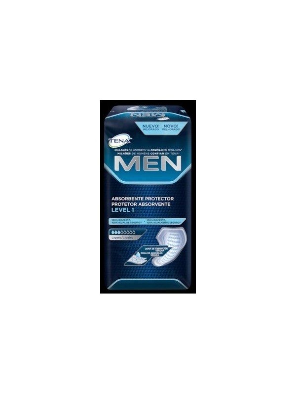 TENA MEN PROTECTOR ABSORBENTE LEVEL 1: OFRECE A LOS HOMBRES DE CUALQUIER EDAD UN CONTROL EFECTIVO DE LA INCONTINENCIA Y LAS PÉRDIDAS DE ORINA LEVES. INCLUYE UNA ZONA DE ABSORCIÓN MEJORADA QUE CONTROLA EFICAZMENTE LAS PÉRDIDAS, LOS OLORES Y LA HUMEDAD, ASÍ COMO UN NUEVO DISEÑO MÁS FINO, MASCULINO Y DISCRETO QUE PERMITE QUE EL PROTECTOR SE FIJE DE FORMA SEGURA A LA ROPA INTERIOR. TENA MEN PROTECTOR ABSORBENTE LEVEL 1 AYUDA A LOS HOMBRES A MANTENER EL CONTROL, SENTIRSE MÁS SEGUROS Y DISFRUTAR DE UNA MEJOR CALIDAD DE VIDA.