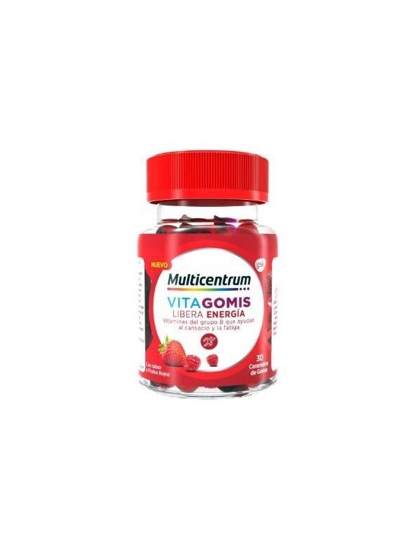 DISFRUTA DE LO BUENO CADA DÍA CON MULTICENTRUM VITAGOMIS LIBERA ENERGÍA. GOMINOLAS CON VITAMINAS B6 Y B12 PARA AYUDAR A DISMINUIR EL CANSANCIO Y LA FATIGA.MULTICENTRUM VITAGOMIS LIBERA ENERGÍA TE PROPORCIONA UNA FÓRMULA EQUILIBRADA DE VITAMINAS Y MINERALES, EN UNA GOMINOLA CON SABOR A FRUTOS ROJOS.FÓRMULA CON 5 VITAMINAS ESENCIALES PARA ADULTOS A PARTIR DE 18 AÑOS.CONTIENE VITAMINA B6, B12 Y NIACINA QUE CONTRIBUYEN AL METABOLISMO ENERGÉTICO NORMAL.APOYA EL BIENESTAR GENERAL DE LOS ADULTOS. UN COMPLEMENTO QUE APOYA TU DIETA CON MICRONUTRIENTES DE ALTA CALIDAD.TOME DOS CARAMELOS DE GOMA AL DÍA.MSATICAR HASTA QUE SE DESHAGA, SE PUEDE TOMAR SIN COMIDA NI AGUA.SI ESTÁ EMBARAZADA O EN PERIODO DE LACTANCIA, DEBERÍA CONSULTAR CON SU MÉDICO O FARMACÉUTICO ANTES DE EMPEZAR A TOMAR ESTE PRODUCTO.VITAMINA DLA VITAMINA D (CALCIFEROL) CONTRIBUYE AL MANTENIMIENTO DE UN SISTEMA INMUNITARIO SALUDABLE. ADEMÁS, LA VITAMINA D CONTRIBUYE AL MANTENIMIENTO DE LOS HUESOS Y LOS DIENTES, ASÍ COMO A UNA FUNCIÓN MUSCULAR NORMAL.B12VITAMINA B12LA VITAMINA B12 AYUDA A DISMINUIR EL CANSANCIO Y LA FATIGA, ASÍ COMO A LA PRODUCCIÓN NORMAL DE GLÓBULOS ROJOS.B6VITAMINA B6LA VITAMINA B6 CONTRIBUYE AL FUNCIONAMIENTO NORMAL DEL SISTEMA NERVIOSO, AL METABOLISMO ENERGÉTICO NORMAL Y AYUDA A DISMINUIR EL CANSANCIO Y LA FATIGA.B3NIACINALA NIACINA CONTRIBUYE AL METABOLISMO ENERGÉTICO NORMAL, AYUDA A DISMINUIR EL CANSANCIO Y LA FATIGA, ASÍ COMO AL FUNCIONAMIENTO NORMAL DEL SISTEMA NERVIOSO.