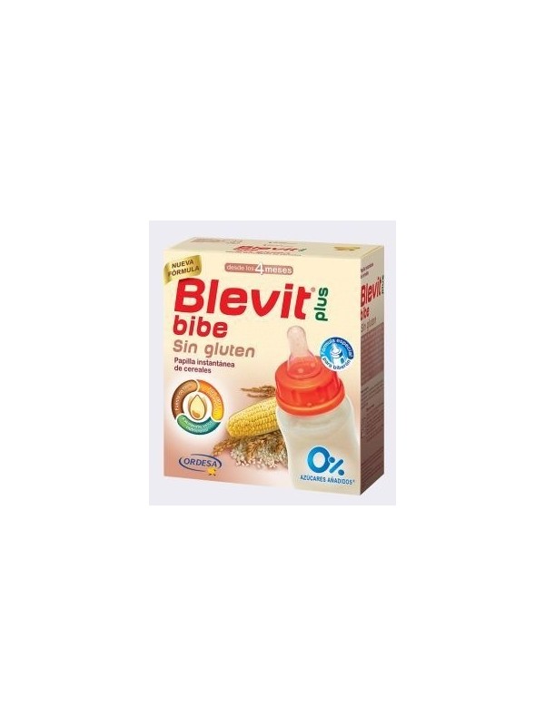 BLEVIT PLUS BIBE SIN GLUTEN ES UNA PAPILLA DE CEREALES ELABORADA A PARTIR DE ARROZ Y MAÍZ. TIENE UNA ELEVADA SOLUBILIDAD Y SU TEXTURA HOMOGENIA Y SUAVE LE PERMITE SER ADMINISTRADA NO SOLO EN PLANO SINO EN BIBERONES TAMBIÉN. SU FÓRMULA PRESENTA:- FRUCTOOLIGOSACÁRIDOS, FUENTE DE FIBRA SOLUBLE.- ALTO CONTENIDO EN CALCIO Y HIERRO.- 13 VITAMINAS, PARA AYUDAR A CUBRIR LAS NECESIDADES DEL BEBÉ DE LOS MICRONUTRIENTES ESENCIALES.