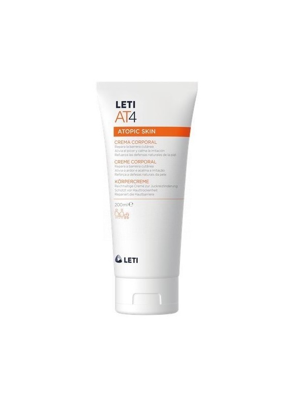 LETI AT-4 CREMA CORPORAL CREA UNA BARRERA CUTÁNEA PARA HIDRATAR Y SUAVIZAR. SE TRATA DE UNA CREMA EMOLIENTE PARA ALIVIAR EL PICOR, PROTEGER Y REFORZAR LA MICROFAUNA NATIVA EN PIELES SECAS Y ATÓPICAS.LO PUEDEN USAR LOS BEBÉS Y NIÑOS CON PIELES ATÓPICAS O MUY SECAS, Y TAMBIÉN LOS AFULTOS CON PUELES HIPERREACTIVAS Y SENILES. DALE A TU PIEL OTRA OPORTUNIDAD CONLETI AT-4 CREMA CORPORAL.