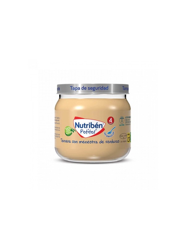 ¡LOS POTITOS® ORIGINALES SON LOS DE NUTRIBÉN®!LOS POTITOS® NUTRIBÉN® TERNERA CON VERDURAS, A BASE DE TERNERA, JUDÍAS VERDES, TOMATE, ZANAHORIA, ARROZ, GUISANTES Y CEBOLLA, SE HAN ELABORADO PARA ALIMENTAR A TU BEBÉ A PARTIR DE LOS 4 MESES, DENTRO DE UNA DIETA VARIADA. LOS POTITOS® DE CARNE SON UN ALIMENTO INFANTIL QUE SE HAN DESARROLLADO SIGUIENDO LAS RECOMENDACIONES DE LA ESPGHAN:PERMITE QUE VAYAS INTRODUCIENDO ALIMENTOS SÓLIDOS EN LA DIETA DEL BEBÉ.SON ELABORADOS CON ACEITE DE OLIVA 100% VIRGEN EXTRA.SIN GLUTEN NI LECHESIN HUEVO.SIN AROMAS NI ESPECIAS.EMPLEAMOS CARNE FRESCALIBRE DE BPA (BISFENOL A)**NUTRIBÉN® TRABAJA CADA DÍA PARA ESTAR MÁS CERCA DE TI, Y ESTE COMPROMISO TAMBIÉN SE REFLEJA EN NUESTRO FORMATO, AHORA LOS POTITOS® NUTRIBÉN® ESTÁN FABRICADOS CON LA BOCA MÁS ANCHA PARA QUE DAR DE COMER A TU BEBÉ SEA MÁS SENCILLO Y FÁCIL.