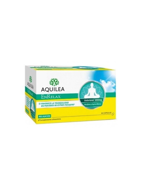GRACIAS A SU FÓRMULA CON EXTRACTOS NATURALES FAVORECE LA TRANQUILIDAD Y LA CALMA EN PERIODOS DE ESTRÉS PASAJERO. EL ESTRÉS PASAJERO SE PUEDE PADECER DURANTE UN PERIODO DE TIEMPO MÁS PROLONGADO Y ESTÁ OCASIONADO POR SITUACIONES DIARIAS RELACIONADAS CON EL TRABAJO, LA FAMILIA Y OTRAS RESPONSABILIDADES.AQUILEA ENRELAX FACILITA LA RELAJACIÓN, GRACIAS A LA COMBINACIÓN DE SUS INGREDIENTES ACTIVOS COMO VALERIANA, PASIFLORA Y ESPINO BLANCO.LA VALERIANA: ES LA PLANTA IDEAL PARA TODA PERSONA SOMETIDA A PERIODOS DE ESTRÉS.PASIFLORA: LA PASIFLORA ES UNA DE LAS PLANTAS MÁS UTILIZADAS PARA MANTENER LA ACTIVIDAD MENTAL DURANTE PERIODOS DE ESTRÉS.ESPINO BLANCO: ES LA PLANTA IDEAL PARA TODA PERSONA SOMETIDA A PERIODOS DE ESTRÉS Y RITMOS DE VIDA ACELERADO, YA QUE AYUDA A TRANQUILIZAR.COMPOSICIÓNPOR 1 CAPSÚLA: VALERIANA (100 MG), PASIFLORA (100 MG), ESPINO BLANCO ( 100 MG).LOS COMPLEMENTOS ALIMENTICIOS NO DEBEN UTILIZARSE COMO SUSTITUTOS DE UNA DIETA VARIADA Y EQUILIBRADA Y DE UN MODO DE VIDA SANO. NO SOBREPASAR LA CANTIDAD DIARIA RECOMENDADA. CONSERVAR EN UN LUGAR FRESCO Y SECO, PROTEGIDO DE LA LUZ SOLAR. MANTENER FUERA DEL ALCANCE DE LOS NIÑOS MÁS PEQUEÑOS. NO ADMINISTRAR A NIÑOS MENORES DE 12 AÑOS.
