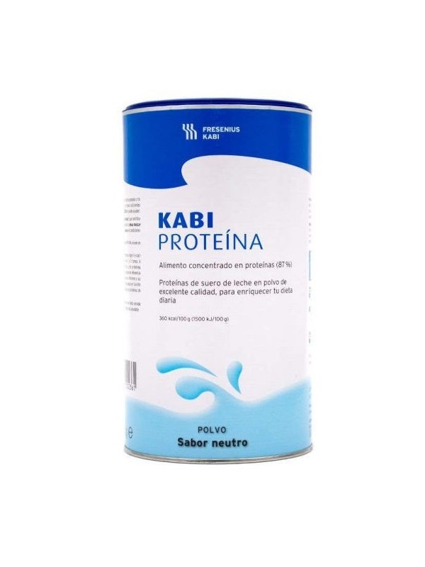 PROPIEDADESALIMENTO CONCENTRADO EN PROTEÍNAS DE SUERO DE LECHE (87%) EN POLVO PARA ENRIQUECER TU DIETA DIARIA.KABI PROTEÍNA ES UN COMPLEMENTO A BASE DE PROTEÍNA QUE ESTÁ INDICADA PARA AQUELLAS PERSONAS QUE SE ENCUENTRAN DESGANADAS, SIN APETITO O QUE DEBIDO A SU DIETA, NO TOMAN TODAS LAS PROTEÍNAS QUE DEBERÍAN. TAMBIÉN CONTRIBUYE A CONSERVAR O AUMENTAR LA MASA MUSCULAR Y A MANTENER LOS HUESOS EN CONDICIONES NORMALES.MODO DE EMPLEO2 MODOS DE USOS: - USO EN PREPARACIONES CLAIENTES >70ºC SIN HERVIR: A) DISOLVER 2-3 CACITOS EN UN PEQUEÑO VOLUMEN DE LÍQUIDO A TEMPERATURA AMBIENTE B) AÑADIR ESTA MEZCLA A 150 ML DE LÍQUIDO CALIENTE O A 150 G DEL ALIMENTO SEMISÓLIDO DIRECTAMENTE ANTES DE SERVIRLO (MÁXIMO 10 MINUTOS ANTES).NO HERVIR LA PREPARACIÓN NI DURANTE NI DESPUÉS DE AÑADIR EL PRODUCTO. - USO CON LÍQUIDOS O CON ALIMENTOS TEMPLADOS PUEDE SER DISUELTO EN ALIMENTOS LÍQUIDOS FRÍOS O CALIENTES, DULCES O SABORIZADOS (ZUMOS, LECHE) Y ALIMENTOS SEMISÓLIDOS (PURÉS, COMPOTAS, PAPILLAS, YOGUR, SOPAS).SE DISUELVE FÁCILMENTE SIN FORMAR GRUPOS.PRECAUCIONES Y ADVERTENCIASNO ES ADECUADO EN NIÑOS DE MENOS DE 1 AÑO.CONSERVACIÓN Y CADUCIDADCONSERVAR EN LUGAR FRESCO Y SECO.TAPAR DESPUÉS DE SU USO.USO EN PACIENTES CON INTOLERANCIA ALIMENTARIAESTE PRODUCTO NO ES APTO PARA UNA PERSONA ALÉRGICA/INTOLERANTE A LA LECHE.CONTIENE UNA FUENTE DE SOJA.
