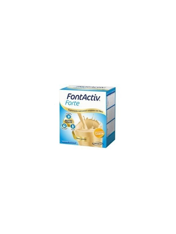 UNA ALIMENTACIÓN EQUILIBRADA ES LA CLAVE DE UNA BUENA SALUD. PERO EN OCASIONES, LA ALIMENTACIÓN NO CONSIGUE LLEGAR A CUBRIR LOS REQUERIMIENTOS MÍNIMOS DE NUTRIENTES Y NECESITAMOS UN APORTE EXTRA PARA CUBRIR NUESTRAS NECESIDADES.LA EDAD AVANZADA, LAS ENFERMEDADES CRÓNICAS O LOS PERIODOS DE HOSPITALIZACIÓN O CONVALECENCIA SON SITUACIONES QUE PUEDEN CONDUCIR A UN DÉFICIT O DESEQUILIBRIO DE NUTRIENTES Y AUMENTAN EL RIESGO DE DESNUTRICIÓN.EN ESTOS CASOS, LA UTILIZACIÓN DE SUPLEMENTOS NUTRICIONALES HA DEMOSTRADO MEJORAR LA CALIDAD DE VIDA Y DISMINUIR EL RIESGO DE DESNUTRICIÓN Y LA APARICIÓN DE COMPLICACIONES ASOCIADAS.FONTACTIV FORTE AYUDA EN LA ALIMENTACIÓN DE ADULTOS Y MAYORES GRACIAS A NUTRISENIOR, UNA COMBINACIÓN DE NUTRIENTES ESPECIALMENTE PENSADOS PARA SATISFACER LAS NECESIDADES ENERGÉTICAS Y NUTRICIONALES DE ADULTOS Y MAYORES QUE TIENEN ALGUNA DIFICULTAD PARA ALIMENTARSE CON NORMALIDAD O QUE SE ENCUENTRAN EN ALGUNA SITUACIÓN ESPECÍFICA DONDE LOS REQUERIMIENTOS NUTRICIONALES ESTÁN AUMENTADOS.FONTACTIV FORTE CON NUTRISENIOR AYUDA A:ENERGÍA: LAS VITAMINAS C, B2, B6 Y B12 AYUDAN A REDUCIR EL CANSANCIO Y LA FATIGA.MÚSCULO: 100% PROTEÍNAS DEL SUERO DE ALTO VALOR BIOLÓGICO Y FÁCIL ASIMILACIÓN. LAS PROTEÍNAS CONTRIBUYEN A CONSERVAR LA MASA MUSCULAR.HUESOS: EL CALCIO Y LA VITAMINA D CONTRIBUYEN AL MANTENIMIENTO DE UNOS HUESOS SANOS.Y ADEMÁS, COMPLEMENTANDO A LOS NUTRIENTES DEL COMPLEJO NUTRISENIOR, FONTACTIV FORTE SE CARACTERIZA POR:ES UN ALIMENTO DIETÉTICO COMPLETO EN POLVO CON FIBRA, 13 VITAMINAS Y 11 MINERALES.APORTA LOS NUTRIENTES DE UNA DIETA COMPLETA Y EQUILIBRADA.FUENTE DE PROTEÍNAS: ESTÁ ELABORADO A PARTIR DE 100% PROTEÍNAS DEL SUERO DE ALTO VALOR BIOLÓGICO Y FÁCIL ASIMILACIÓN. LAS PROTEÍNAS DE SUERO DE LECHE CONTRIBUYEN A AUMENTAR LA MASA MUSCULAR.FUENTE DE CALCIO, VITAMINA D Y FÓSFORO, QUE CONTRIBUYEN AL MANTENIMIENTO DE LOS HUESOS.FUENTE DE ZINC, SELENIO, COBRE Y VITAMINA C, QUE PARTICIPAN EN EL FUNCIONAMIENTO NORMAL DEL SISTEMA INMUNITARIO Y EN LA PROTECCIÓN DE LAS CÉLULAS FRENTE AL DAÑO OXIDATIVO.SIN LACTOSA: PREPARADO CON AGUA O CON LECHE SIN LACTOSA ES IDEAL TAMBIÉN PARA COMPLEMENTAR LA DIETA EN CASO DE INTOLERANCIA A LA LACTOSA.DELICIOSO SABOR A VAINILLA.VERSÁTIL: SE PUEDE PREPARAR CON AGUA O CON LECHE.
