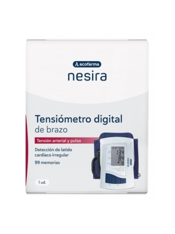 ACCIÓN Y DESCRIPCIÓNDISPOSITIVO DIGITAL DE MEDICIÓN DE LA TENSIÓN ARTERIAL TOTALMENTE AUTOMÁTICO CON DETECTOR DE ARRITMIA INTEGRADO PARA SER USADO EN EL BRAZO.PERMITE UNA MEDICIÓN MUY RÁPIDA Y FIABLE DE LA TENSIÓN ARTERIAL SISTÓLICA Y DIASTÓLICA, ASÍ COMO DEL PULSO, MEDIANTE EL MÉTODO OSCILOMÉTRICO.ESTE DISPOSITIVO ES FÁCIL DE USAR Y HA DEMOSTRADO EN ESTUDIOS CLÍNICOS SU CAPACIDAD DE PROPORCIONAR UNA PRESIÓN EXCELENTE.SU PANTALLA DE TAMAÑO GRANDE FACILITA LA VISUALIZACIÓN DEL ESTADO OPERATIVO Y DE LA PRESIÓN DEL BRAZALETE DURANTE UNA MEDICIÓN.INFLA Y DESINFLA AUTOMÁTICAMENTE.CAMBIO DE PILA SENCILLO.99 MEMORIAS.TAMAÑO: 115 X 182 X 76 MM PESO: 460G CON PILAS INTERVALO DE MEDICIÓN: SIS./DIAS: 30 A 280 MMHG PULSO: 40 A 200 PULSACIONES POR MINUTOMODO DE EMPLEORETIRE LA TAPA E INSERTE LAS PILAS.INSERTE EL TUBO DEL BRAZALETE EN LA ABERTURA PREVISTA EN EL LADO IZQUIERDO DEL INSTRUMENTO.AJUSTE LA FECHA Y LA HORA TAL Y COMO INDICAN LAS INSTRUCCIONES DEL INTERIOR.COLOCAR EL BRAZALETE COMO INDICAN LAS INSTRUCCIONES.PULSE EL BOTÓN DE INICIO, EL BRAZALETE SE INFLARÁ Y AL CABO DE UNOS SEGUNDOS EL RESULTADO DE LA MEDICIÓN APARECERÁ EN LA PANTALLA.PARA MÁS INFORMACIÓN CONSULTE LAS INSTRUCCIONES DEL INTERIOR.PRECAUCIONES Y ADVERTENCIASALGUNOS COMPONENTES ELECTRÓNICOS DEL APARATO SON MUY SENSIBLES, POR LO QUE DEBE EVITARSE SU CERCANÍA A CAMPOS ELÉCTRICOS O ELECTROMAGNÉTICOS DE ALTA INTENSIDAD (POR EJEMPLO TELÉFONOS MÓVILES, MICROONDAS, ETC.) YA QUE PUEDEN DAR LUGAR A UNA PÉRDIDA TEMPORAL EN LA EXACTITUD DE LA MEDICIÓN.ANTES DE EFECTUAR LA MEDICIÓN: - EVITE COMER, FUMAR, ASÍ COMO TODO TIPO DE EJERCICIO INMEDIATAMENTE ANTES DE EFECTUAR LA MEDICIÓN.INTENTE ENCONTRAR TIEMPO PARA RELAJARSE SENTADO EN UN SILLÓN EN UNA ATMÓSFERA TRANQUILA DURANTE 5 MINUTOS ANTES DE LA MEDICIÓN.PARA COMPARAR MEDICIONES DE LA TENSIÓN ARTERIAL SE REQUIERE PERMANECER SIEMPRE EN UN AMBIENTE TRANQUILO.- QUÍTESE CUALQUIER PRENDA DE VESTIR AJUSTADA A SU BRAZO.- EFECTÚE LA MEDICIÓN SIEMPRE EN EL MISMO BRAZO (NORMALMENTE EN EL IZQUIERDO).- EFECTÚE LAS MEDICIONES REGULARMENTE A LA MISMA HORA, PUES LA TENSIÓN ARTERIAL CAMBIA A LO LARGO DEL DÍA.- CUALQUIER ESFUERZO QUE REALICE EL PACIENTE PARA SOSTENER EL BRAZO O FORZAR SU POSICIÓN PUEDE INCREMENTAR LA TENSIÓN ARTERIAL.ASEGÚRESE DE ESTAR EN UNA POSICIÓN CONFORTABLE Y RELAJADA Y NO ACTIVE NINGÚN MÚSCULO DEL BRAZO EN EL QUE ESTÉ EFECTUANDO LA MEDICIÓN.- SI LA ARTERIA DEL BRAZO ESTÁ CONSIDERABLEMENTE MÁS BAJA O MÁS ALTA QUE EL CORAZÓN SE OBTENDRÁ UNA LECTURA ERRÓNEA.- LOS BRAZALETES DEMASIADO ESTRECHOS O DEMASIADO CORTOS DAN LUGAR A VALORES DE MEDICIÓN ERRÓNEOS.LA SELECCIÓN DEL BRAZALETE CORRECTO ES DE EXTREMA IMPORTANCIA.EL TAMAÑO DEL BRAZALETE DEPENDE DE LA CIRCUNFERENCIA DEL BRAZO (MEDIDO EN EL CENTRO).EL TAMAÑO ADMISIBLE ESTÁ IMPRESO SOBRE EL BRAZALETE.- UN BRAZALETE SUELTO O UNA BOLSA DE AIRE QUE SOBRESALGA HACIA UN LADO PRODUCIRÁ VALORES DE MEDICIÓN ERRÓNEOS.CONSERVACIÓN Y CADUCIDADEVITE EXPONER EL TENSIÓMETRO A TEMPERATURAS EXTREMAS, A LA HUMEDAD, AL POLVO Y A LA RADIACIÓN SOLAR.EVITE PLEGAR EXCESIVAMENTE EL BRAZALETE Y EL TUBO.CUANDO NO VAYA A USAR EL APARATO DURANTE MUCHO TIEMPO, RETIRE LAS PILAS.LIMPIE EL APARATO CON UN TRAPO SUAVE Y SECO, NO UTILICE DETERGENTES NI DISOLVENTES.QUITE LAS MANCHAS DEL BRAZALETE O LA GOMA CON UN PAÑO HÚMEDO.NO LAVAR EL BRAZALETE EN UN LAVAPLATOS O UNA LAVADORA.EVITE LAS CAÍDAS, TRÁTELO CON CUIDADO Y NO LE DE GOLPES FUERTES.NO INTENTE ABRIR NUNCA EL APARATO, SI LO HACE PERDERÁ LA CALIBRACIÓN HECHA POR EL FABRICANTE.